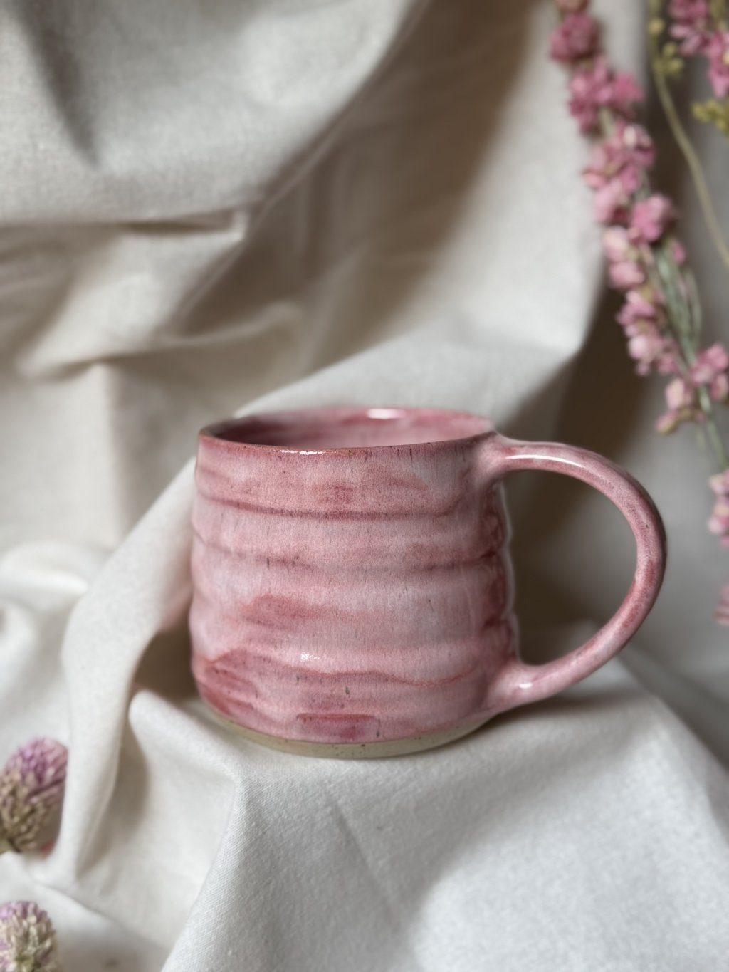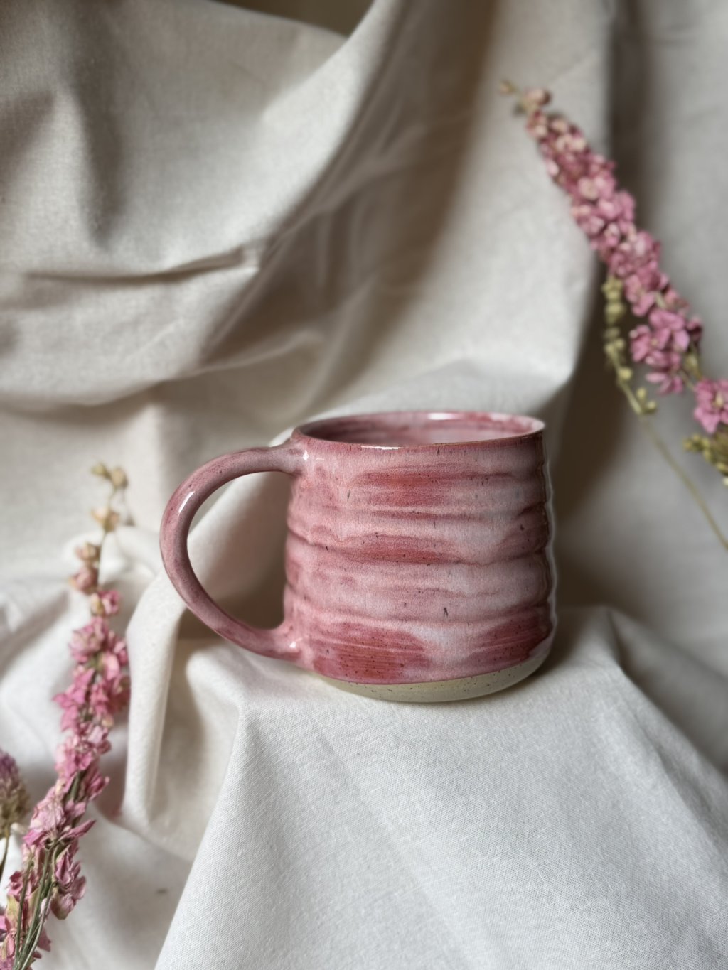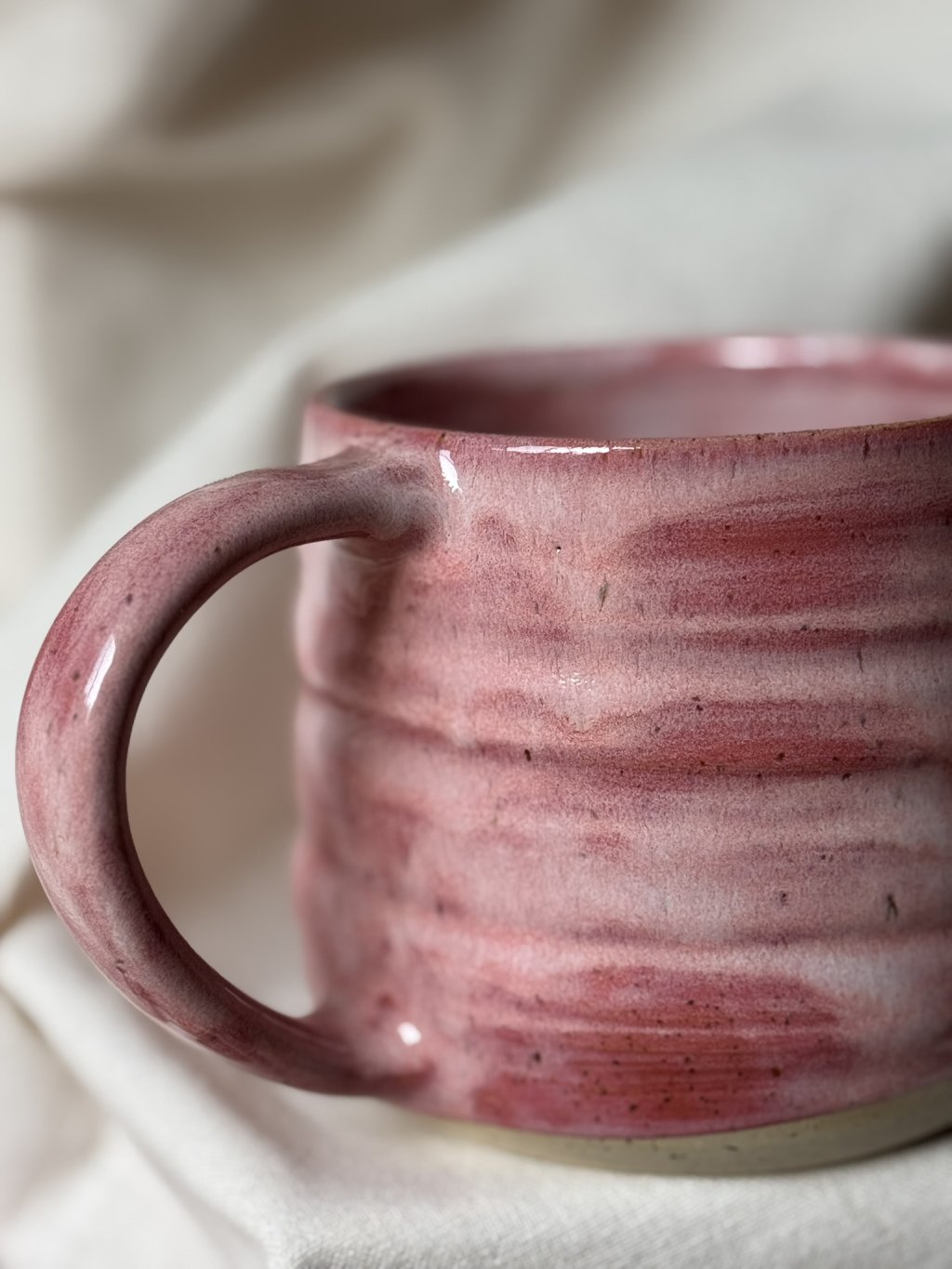 Na kruhu točený kameninový hrnek.