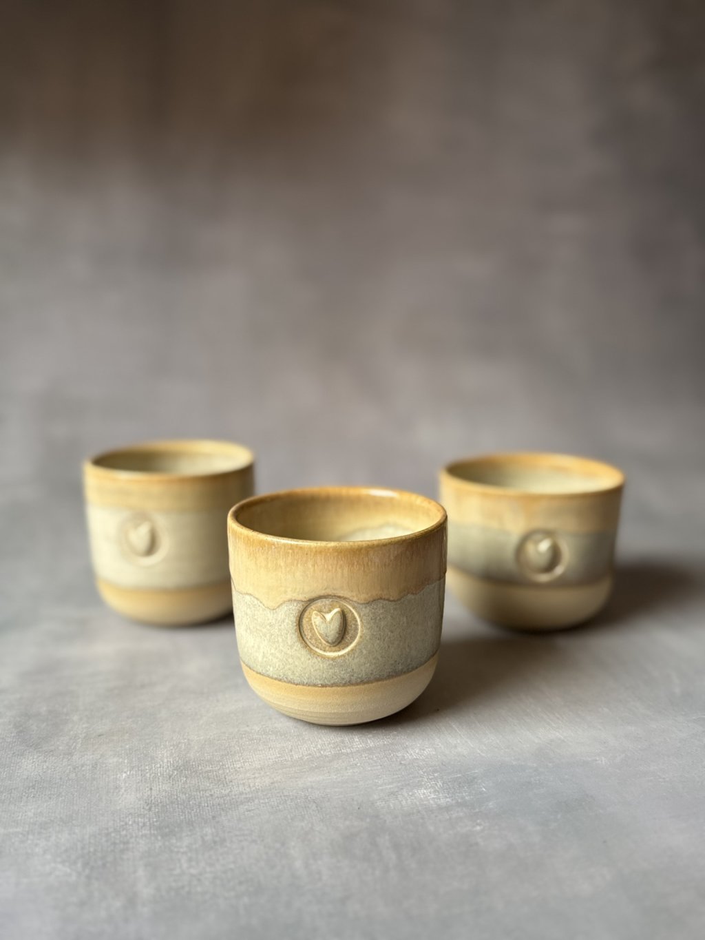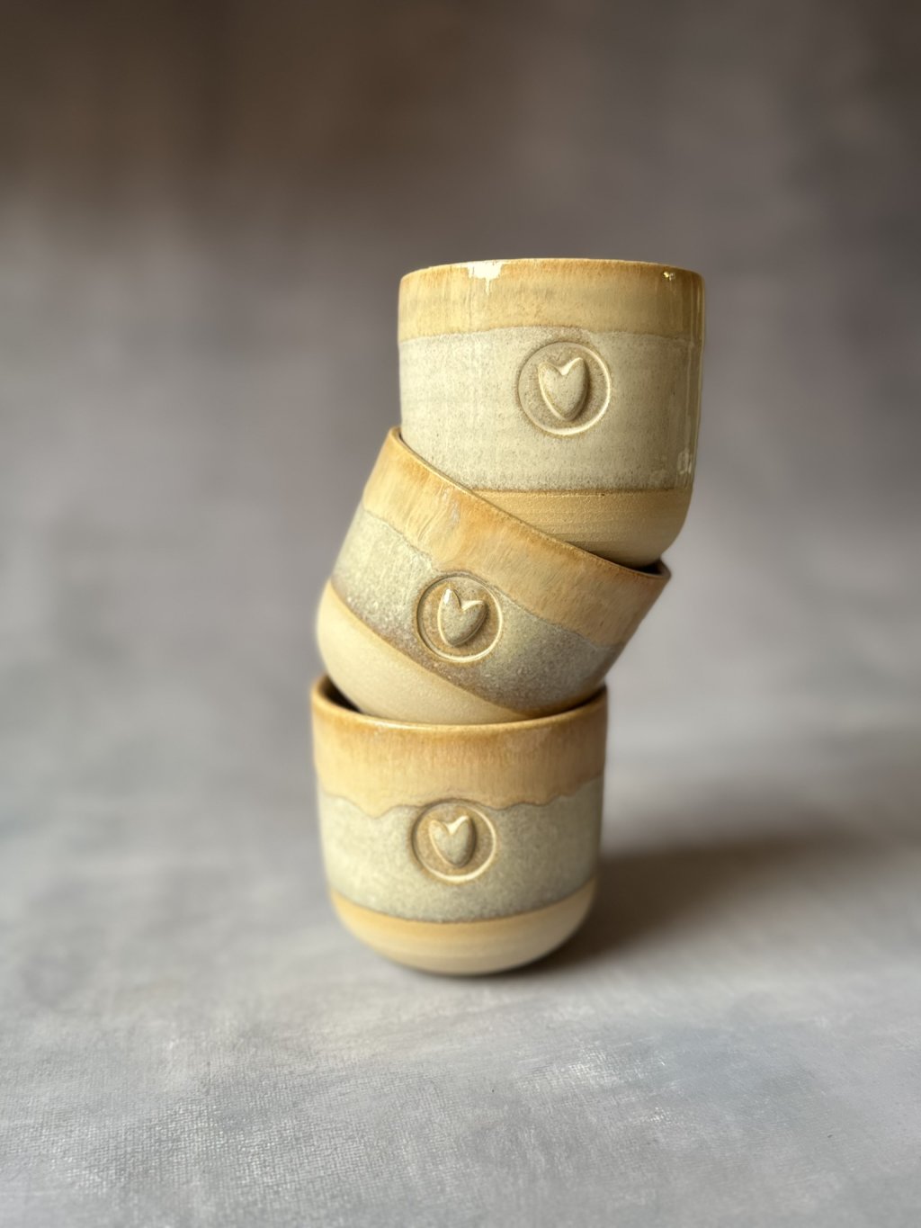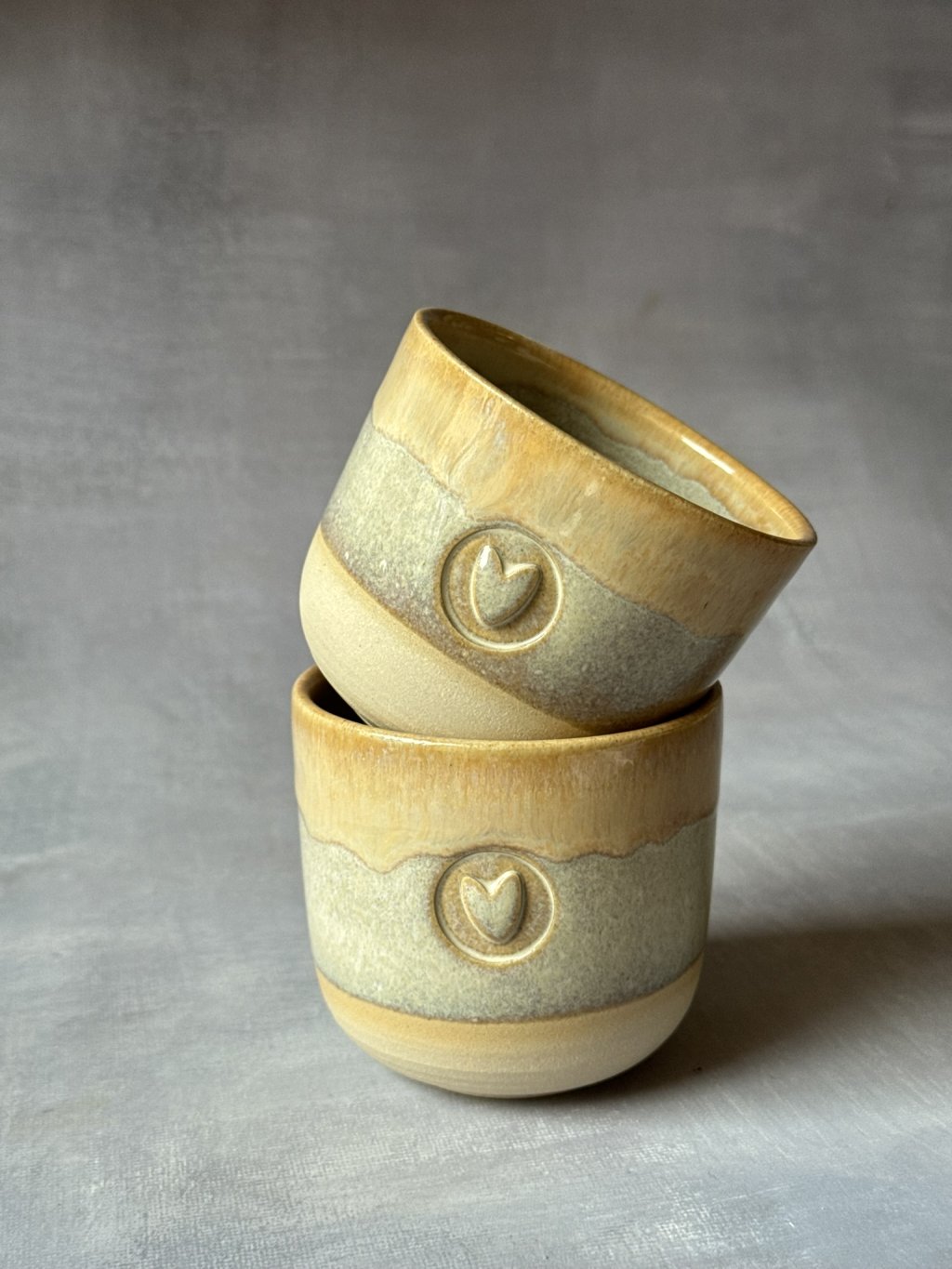 Na kruhu točený kameninový kalíšek.