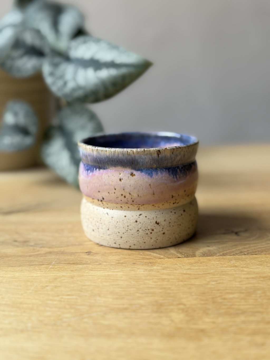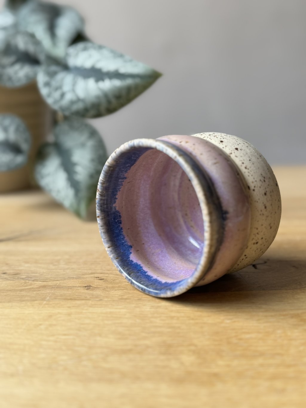 Na kruhu točený kameninový kalíšek.