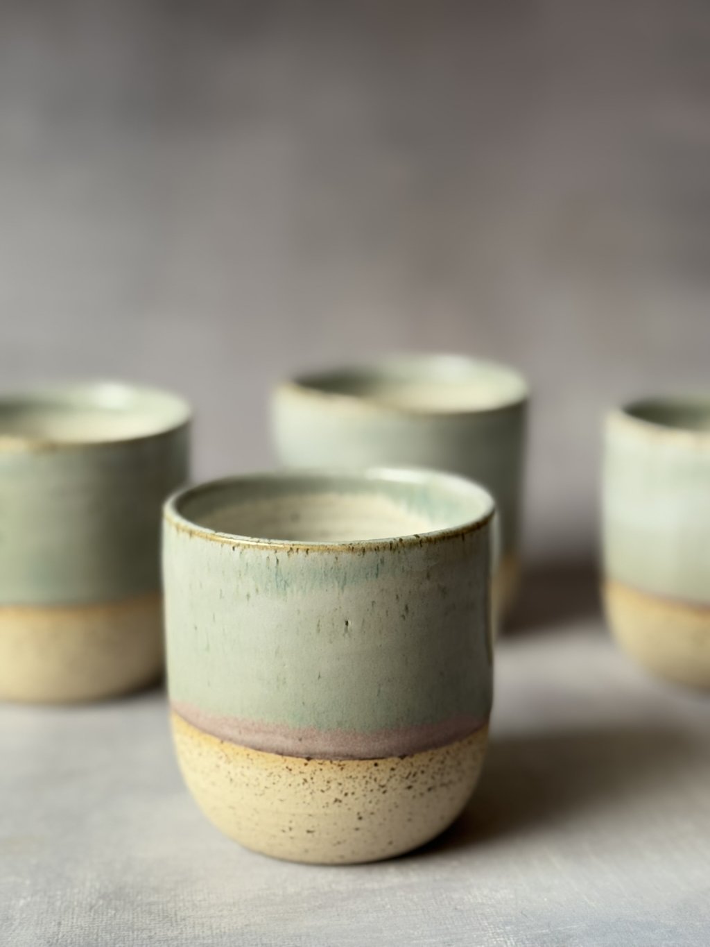 Na kruhu točený kameninový kalíšek.