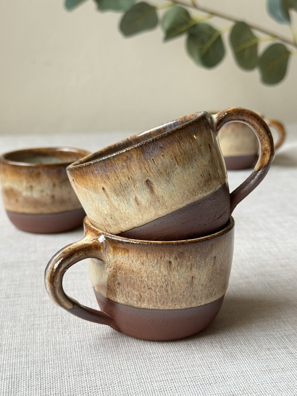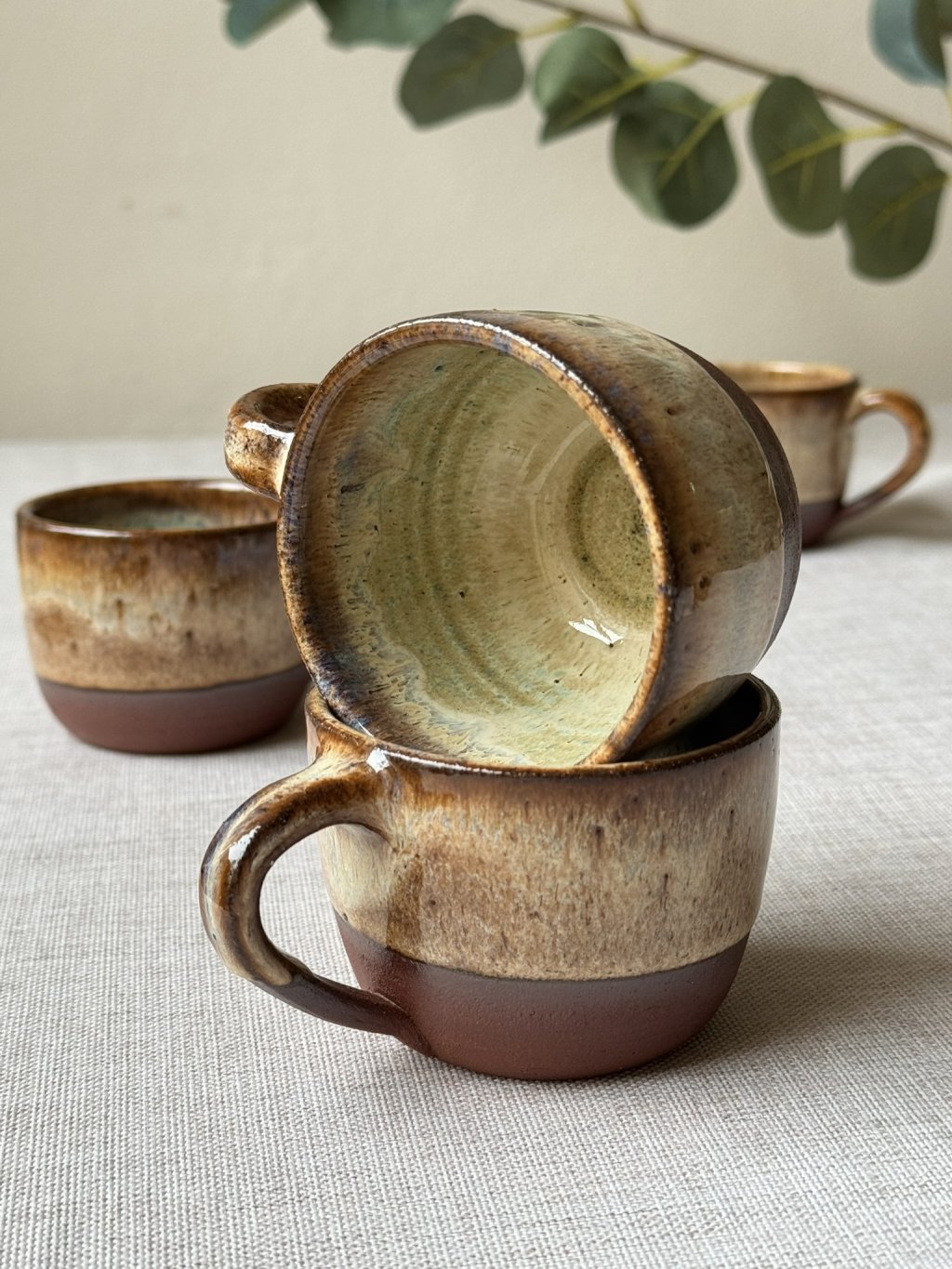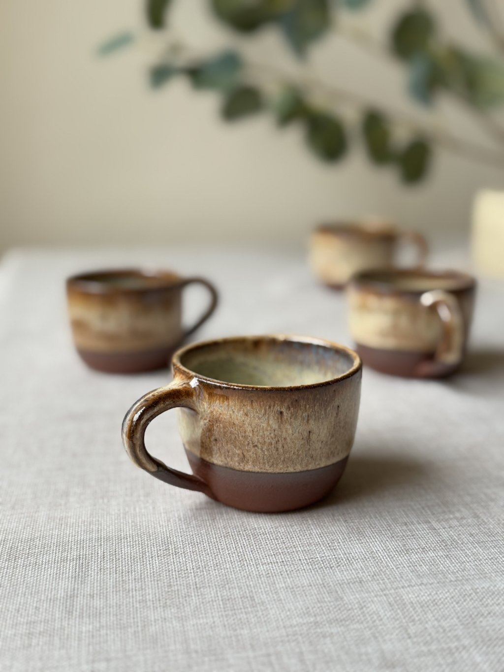 Na kruhu točený kameninový hrnek.