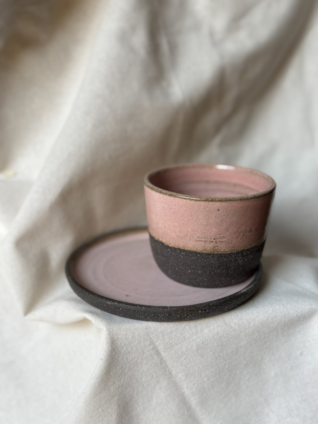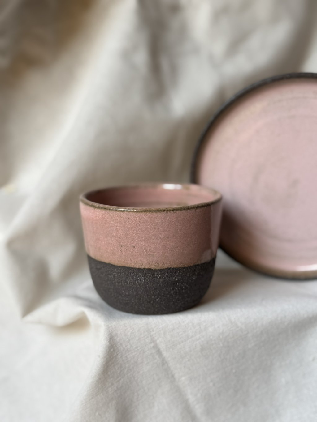 Na kruhu točený talířek a kalíšek.
